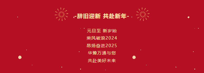 在2025年元旦到來之際,我謹(jǐn)代表華豫萬通公司,向關(guān)心和支持華豫萬通發(fā)展的各級(jí)領(lǐng)導(dǎo)和各界朋友、合作伙伴、廣大客戶,以及工作在一線的所有員工,致以誠(chéng)摯的祝福和深深地感謝!未來之路,我們同行,把握趨勢(shì),乘勢(shì)而上,聚勢(shì)共贏,馳騁未來。