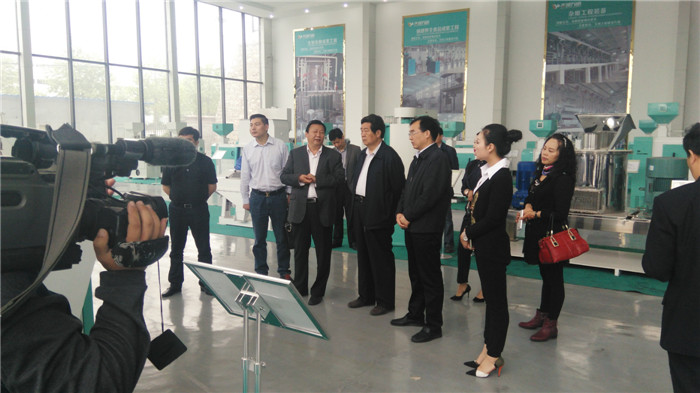 商會參觀公司設備展廳,董事長沈玉現介紹很新智能谷物除霉設備