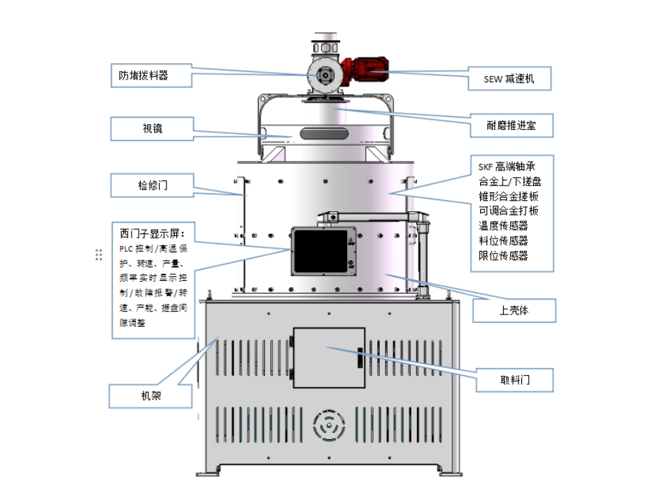 - 智能進(jìn)料防堵裝置:采用新型防堵結(jié)構(gòu)設(shè)計(jì),保證物料暢通不堵塞。